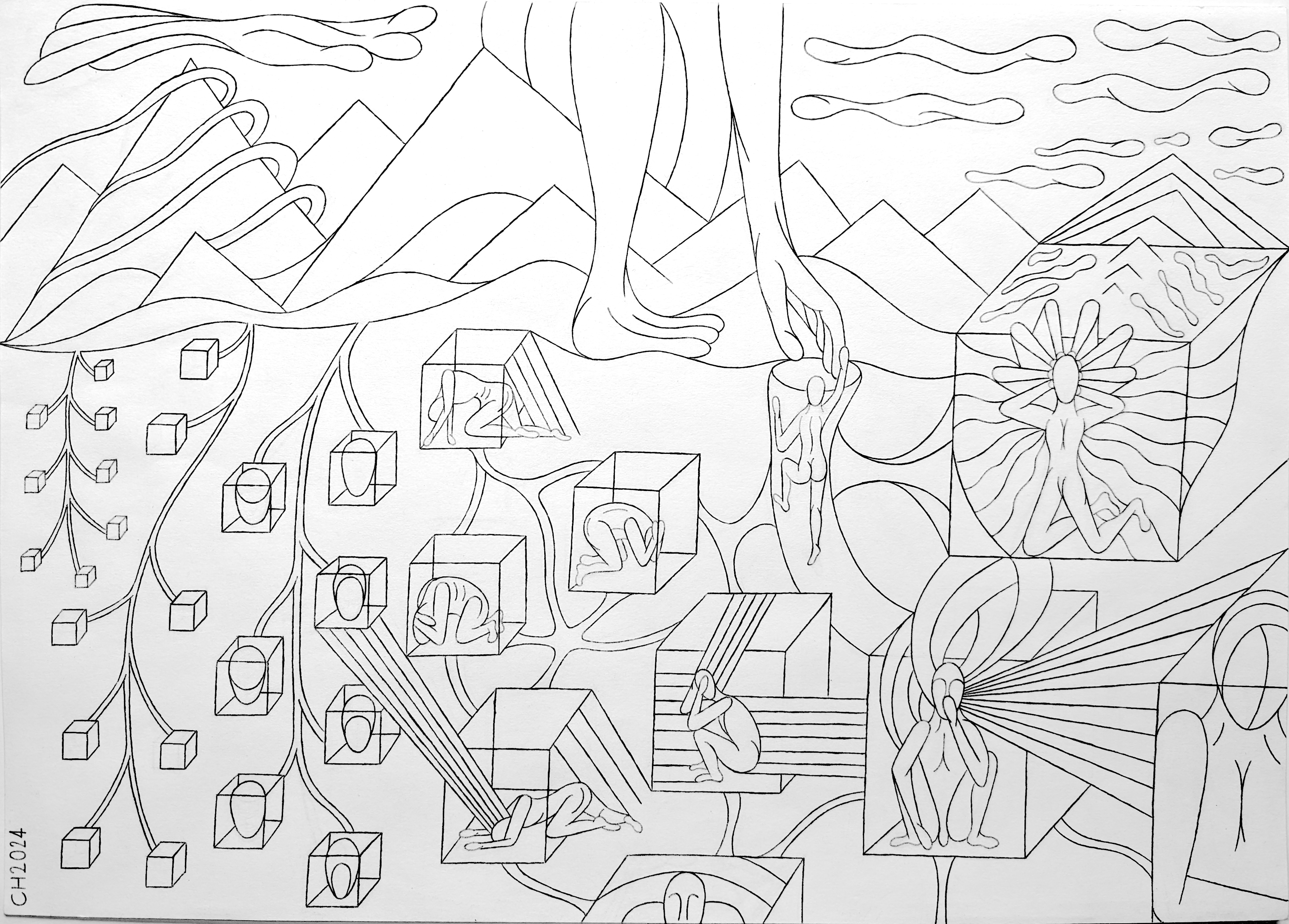 art, cli-fi, drawing, earth, emotions, existence, humanity, humans, illustration, life, memories, mental health, mind, nature, senses, thought