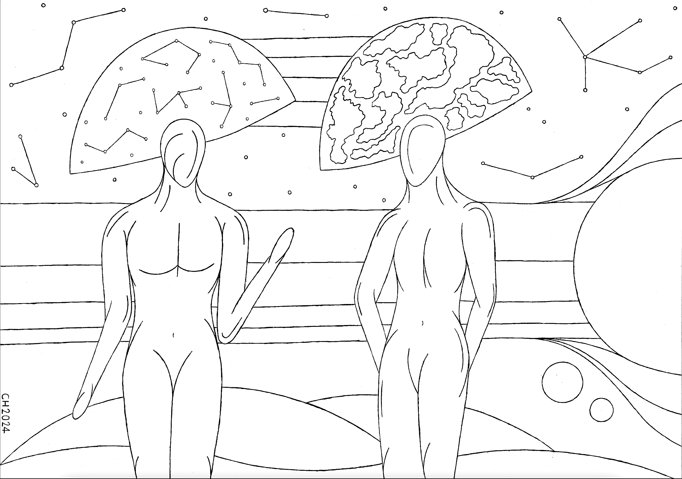 anatomy, art, astronomy, brain, climate, communication, connection, consciousness, constellations, contact, conversation, cosmogony, cosmos, creation, distance, drawing, energy, existence, future, haturn, hemispheres, humanity, humans, imagination, life, mental health, navels, planets, poles, space, stars, thought, time, universe, worlds
