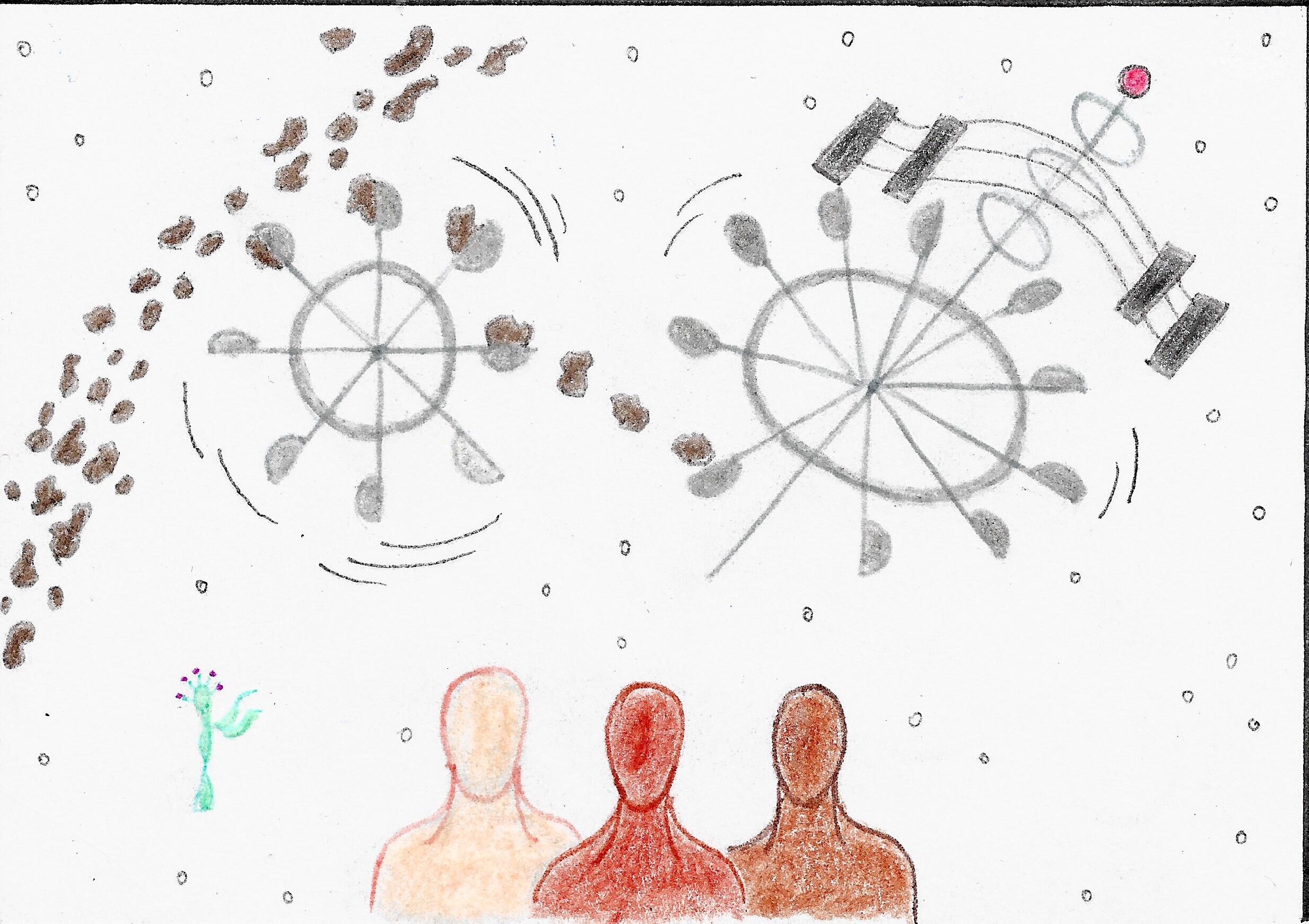 adaptation, bicycle, bicycles, bikes, biking, climate, climate change, climate crisis, conceptual, cycling, design, drawing, earth, emissions-free transport, engineering, exercise, fitness, future, global heating, global warming, green transport, gyroscope, hope, humanity, humans, ideas, inventions, life, locomotion, machines, mechanics, people, personal transport, prototype, resilience, science, speculative, sustainability, technology, transport, vehicles, zero-emissions transport